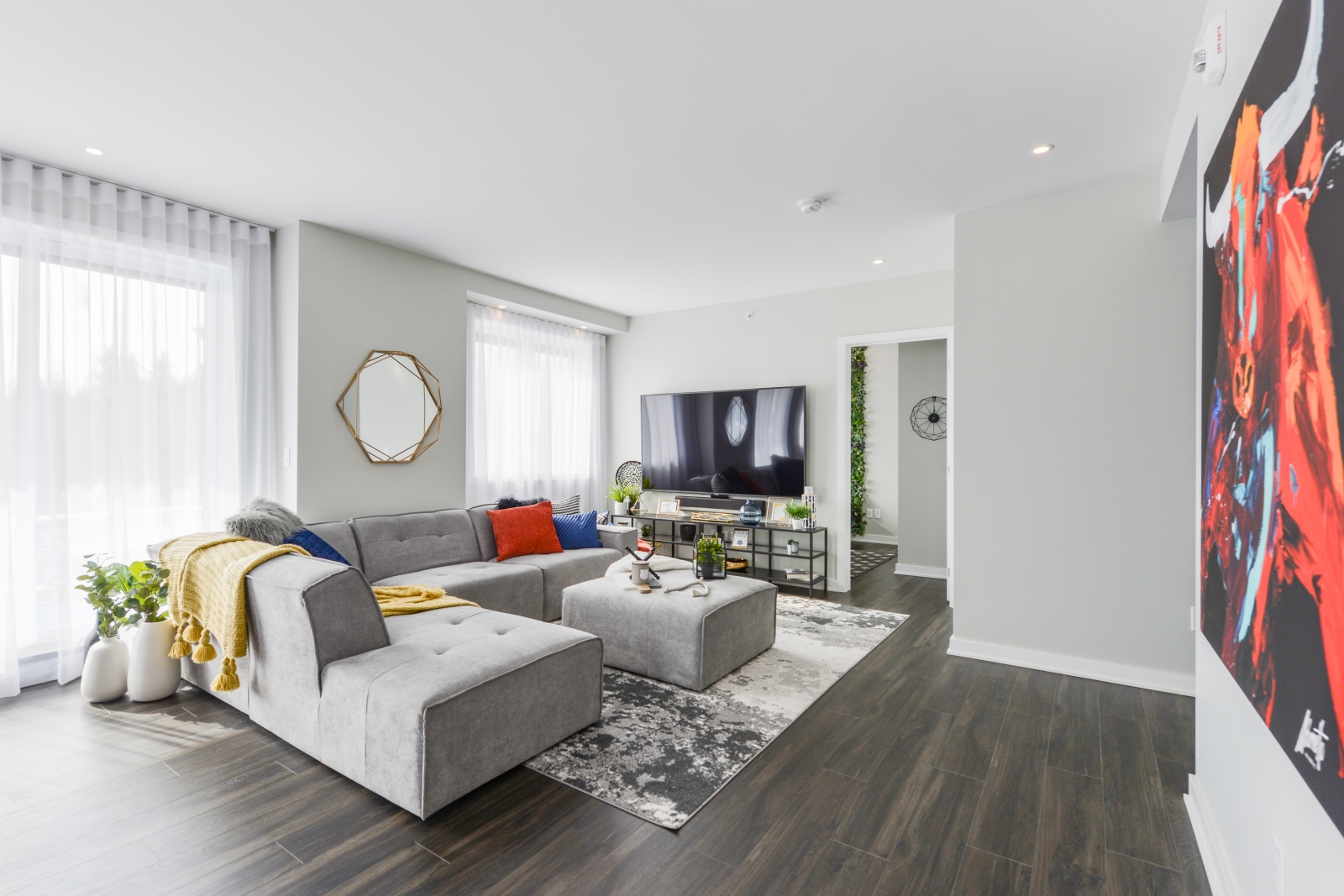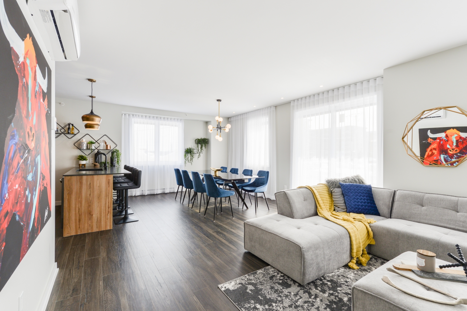 SkyBlü Condos is a condominium project located within Cité Mirabel that offers more than thirty different unit models from 1 to 3 bedrooms ranging in sizes from 740 to over 2,700 sq.ft. One of the rare projects on the North Shore with a reinforced concrete structure.
